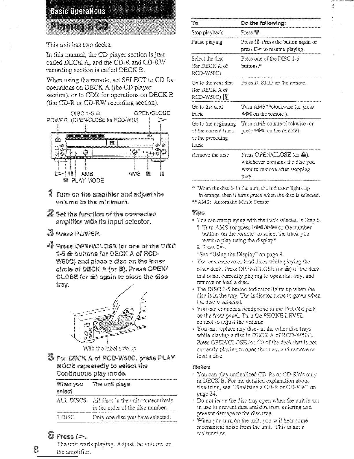 Sony RCD-W50C - Basic Operations; Playing a CD