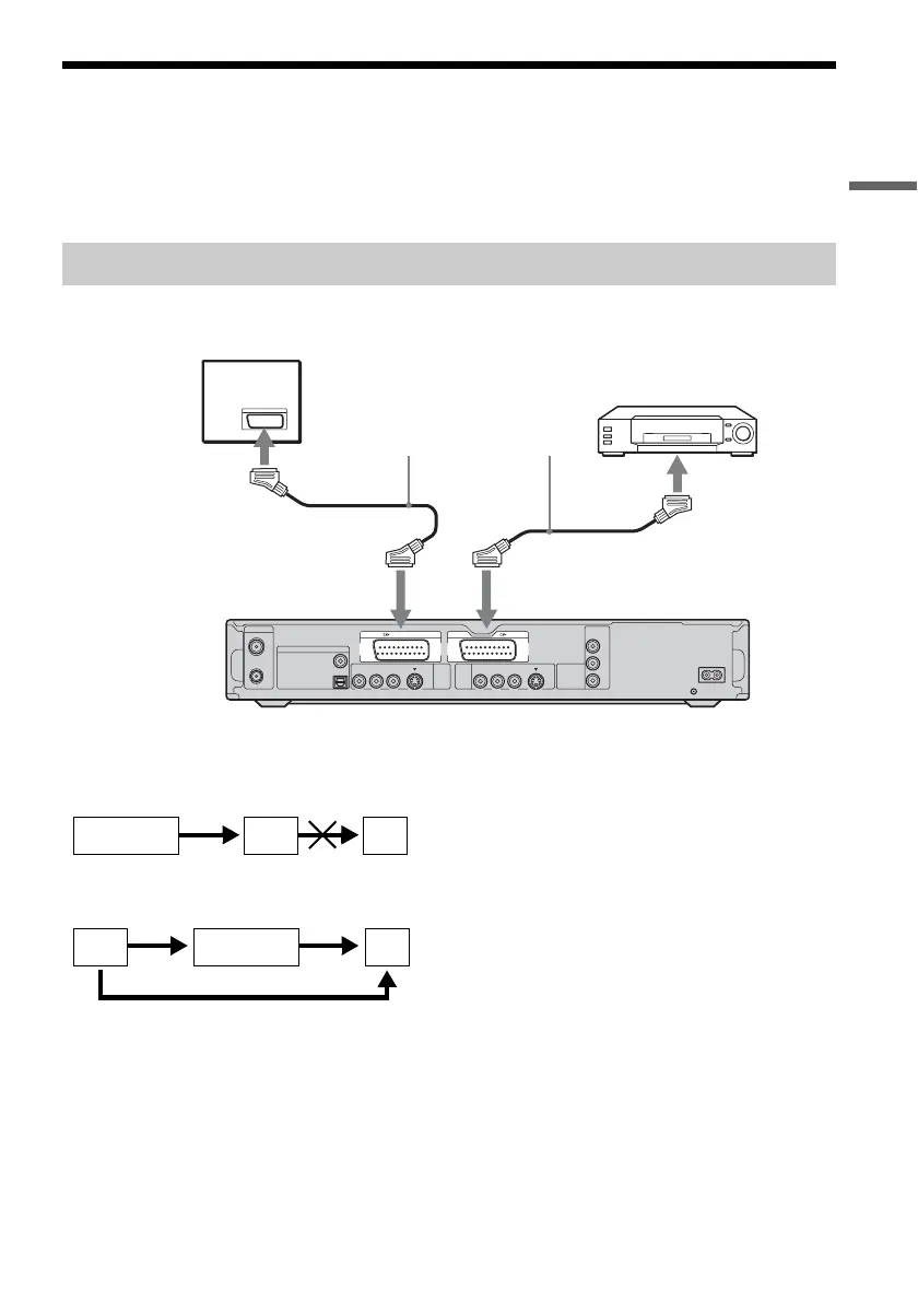 • If you disconnect the recorder’s mains lead, you will not be able to view the signals from the connected VCR.
