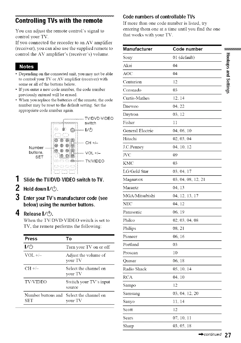 1 Slide the TV/DVD.VIDEO switch to TV.