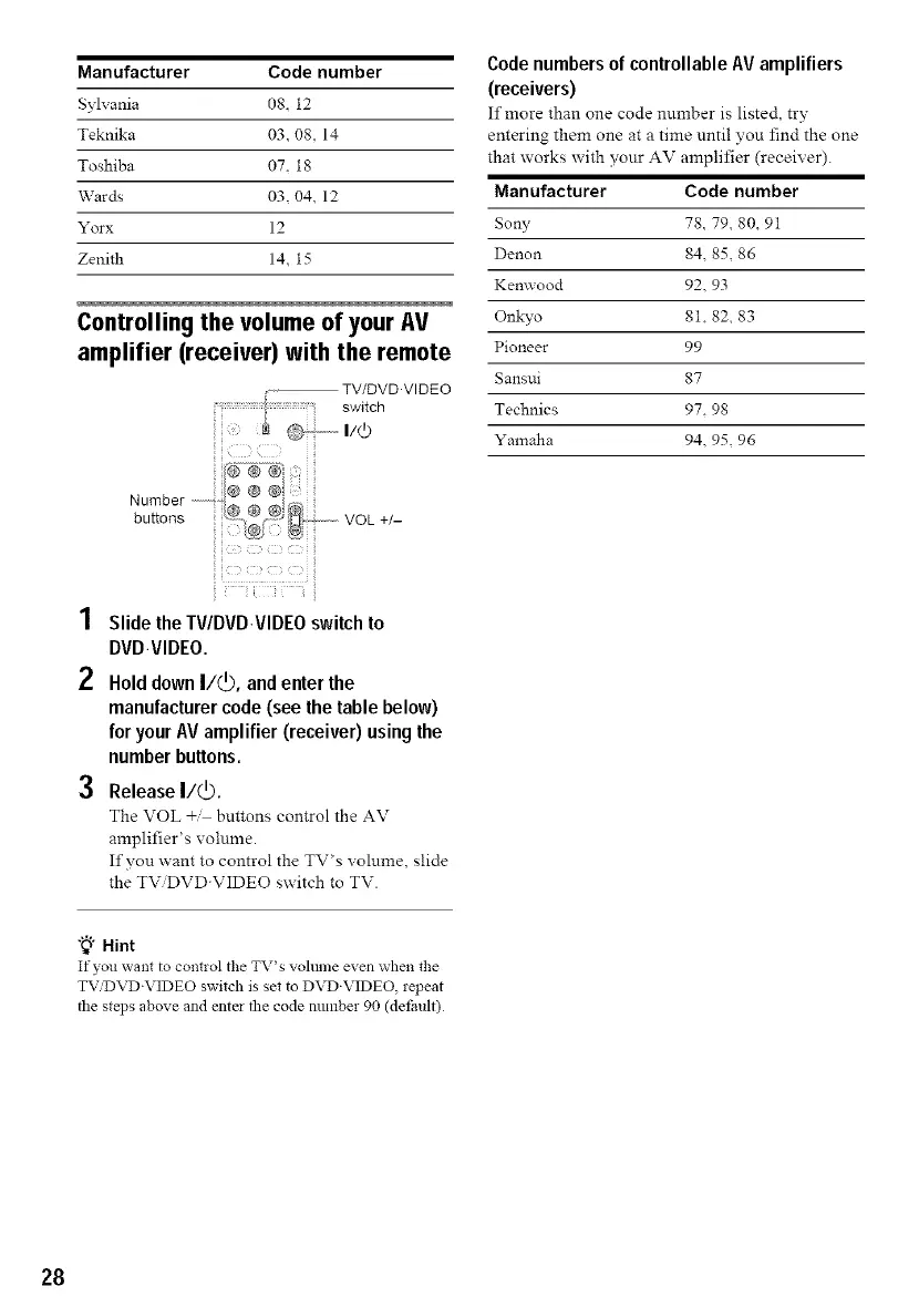 TV'DVD.VIDEO switch is set to DVD.VIDEO, repeat