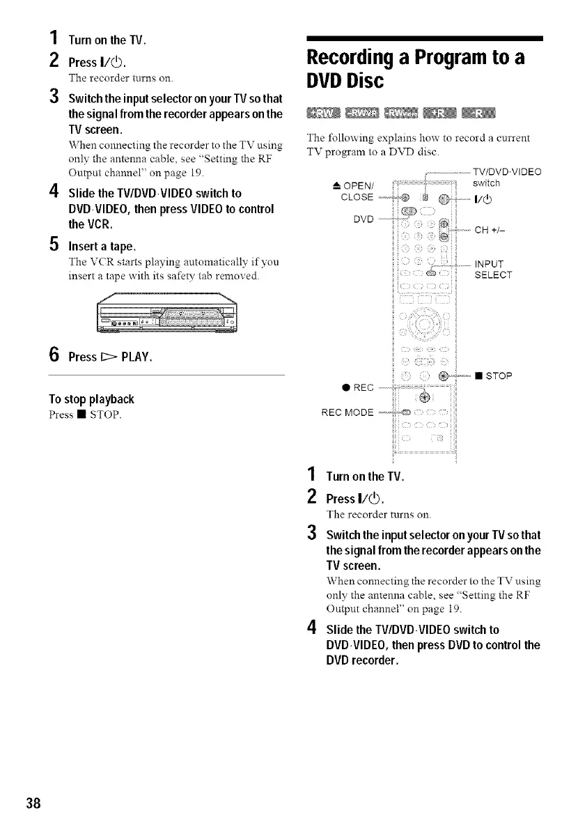 4 Slide the TV/DVD.VIDEO switch to