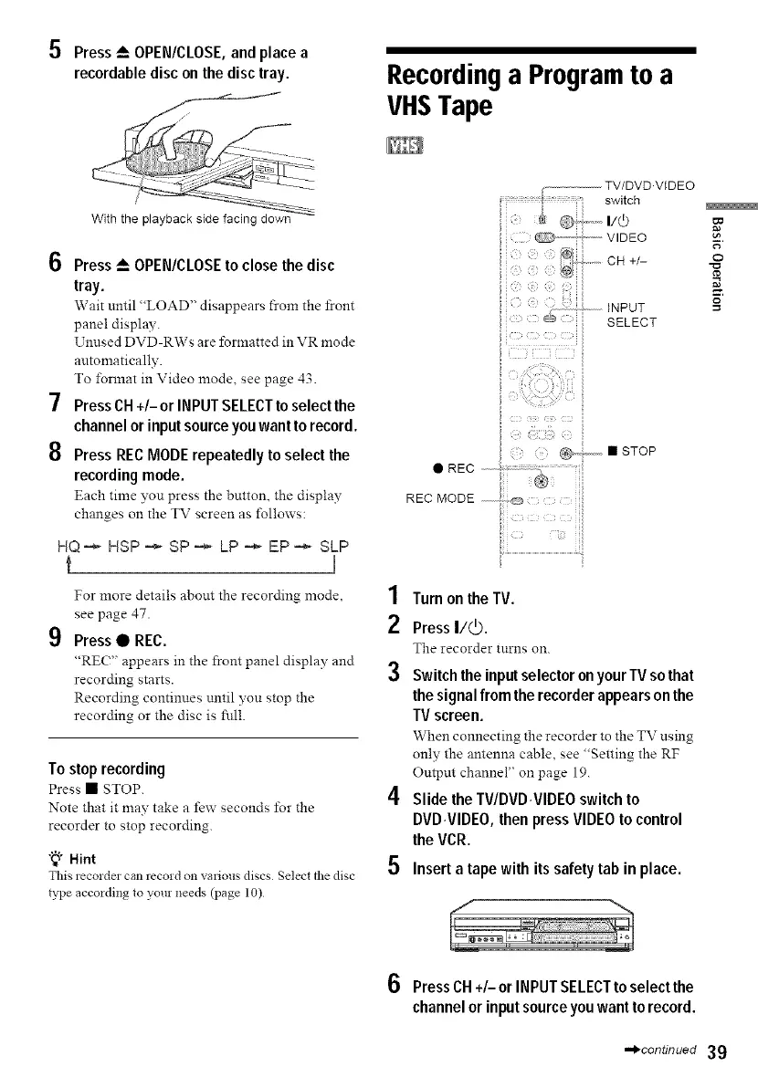 channelorinputsource you want torecord.