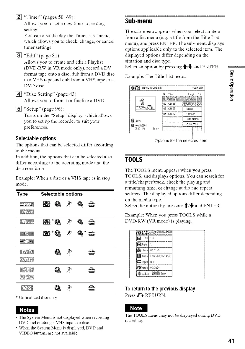 Example: When a disc or a VHS tape is in stop