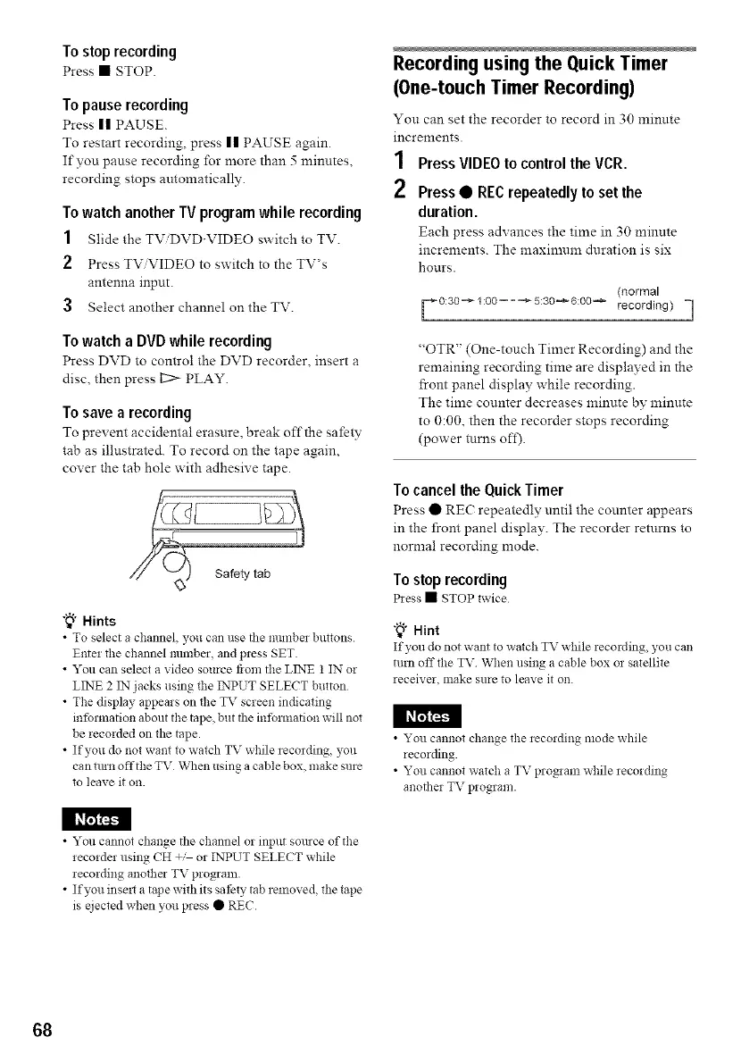 • If you inse_ a tape with its sat)ty tab removed, the tape