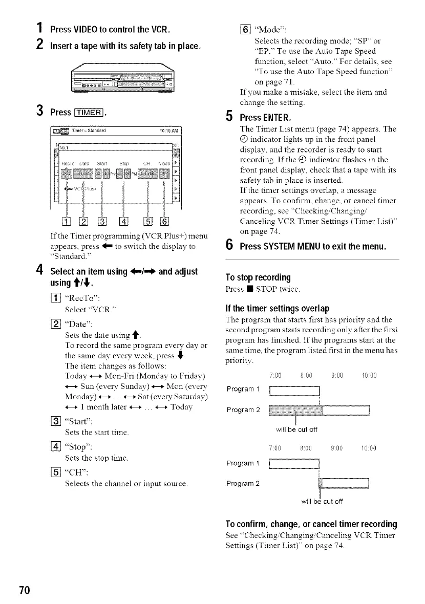 See "Checking'Changing, Canceling V(R Timer