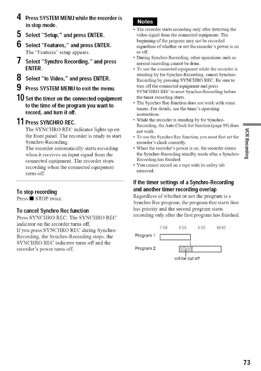 • To use the Sw]chro Rec fimction, you must first set the ;_