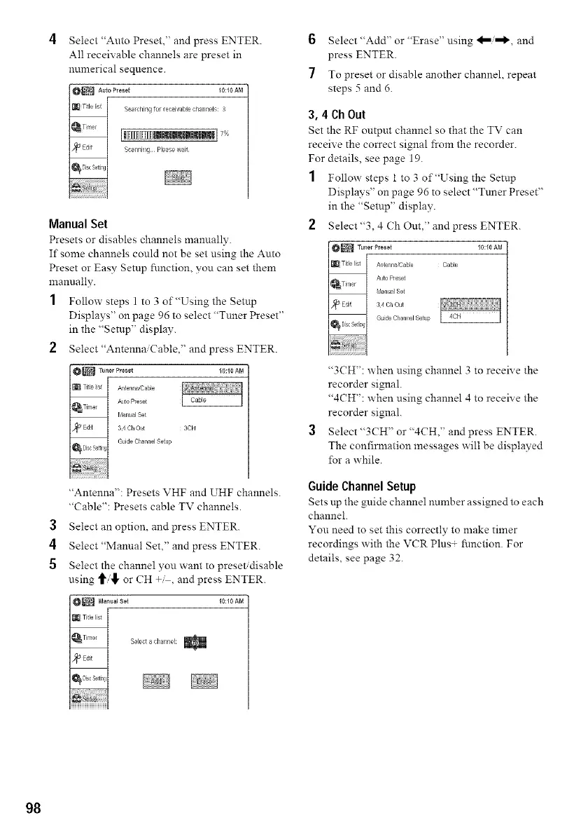 Displays" on page 96 to select "Tuner Preset"