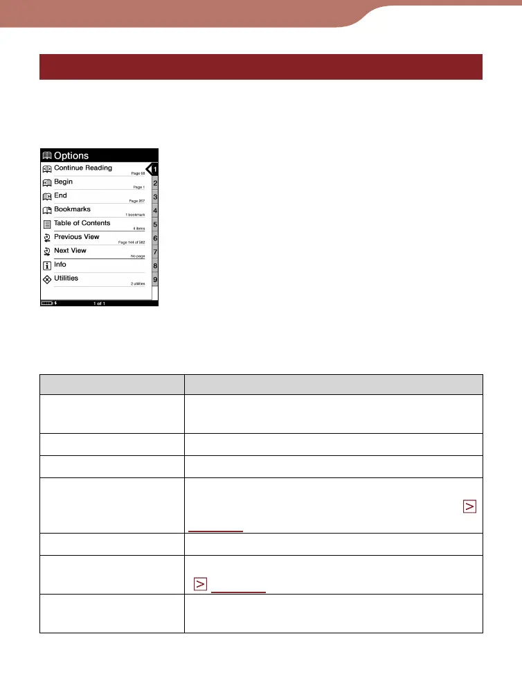 The “Options” menu appears after you select a book from