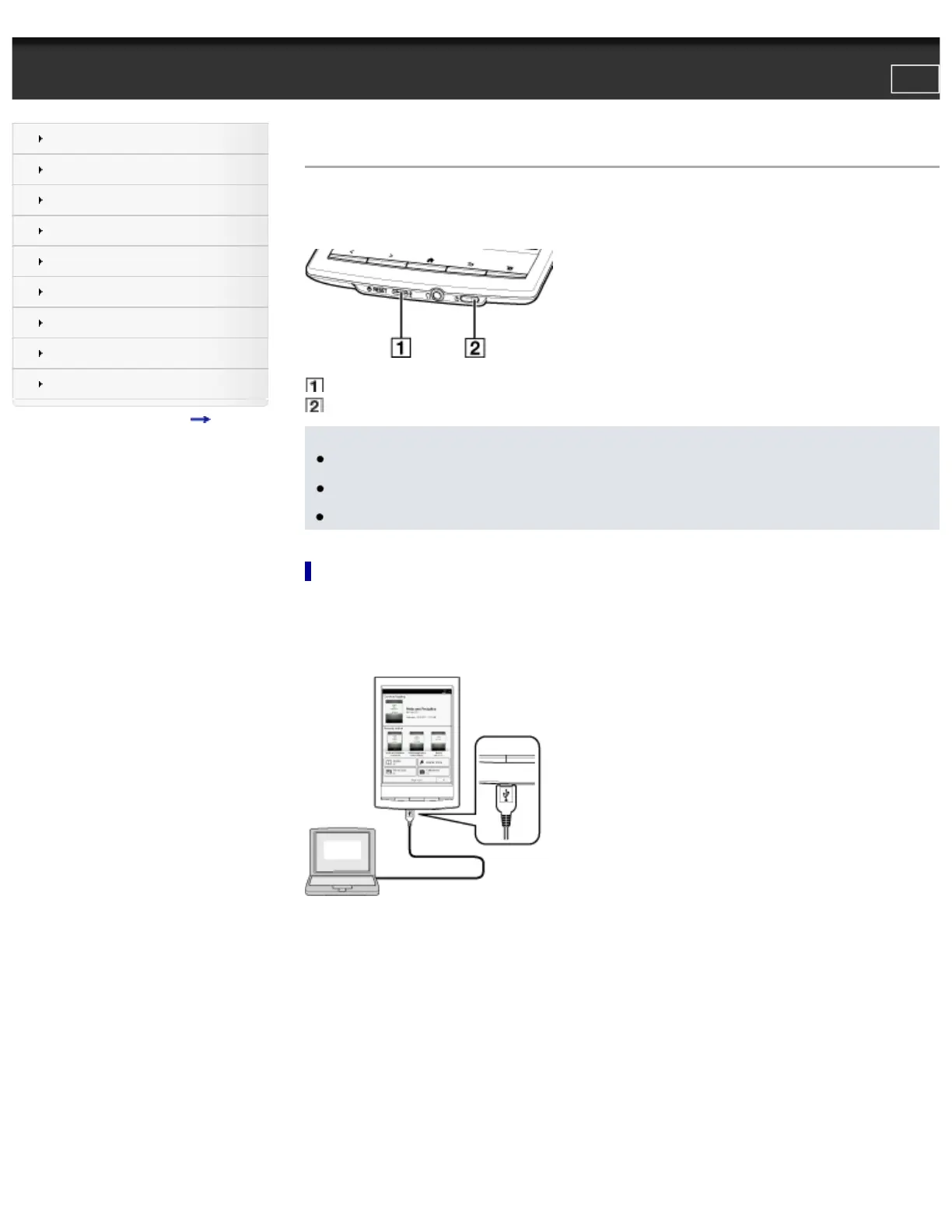 Top page > Getting started > Battery > Charging the Reader