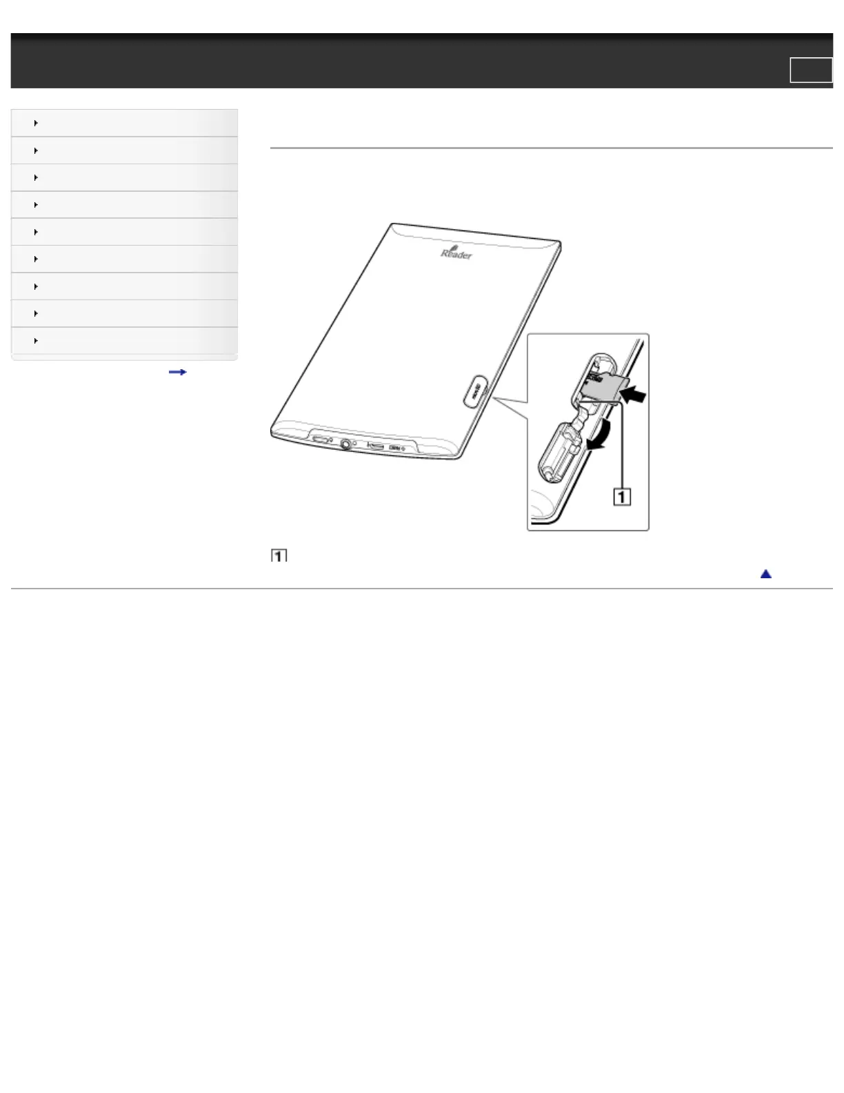 The microSD card slot is located on the lower-right side of the back of the Reader. Insert the memory card into the slot with the card’s label