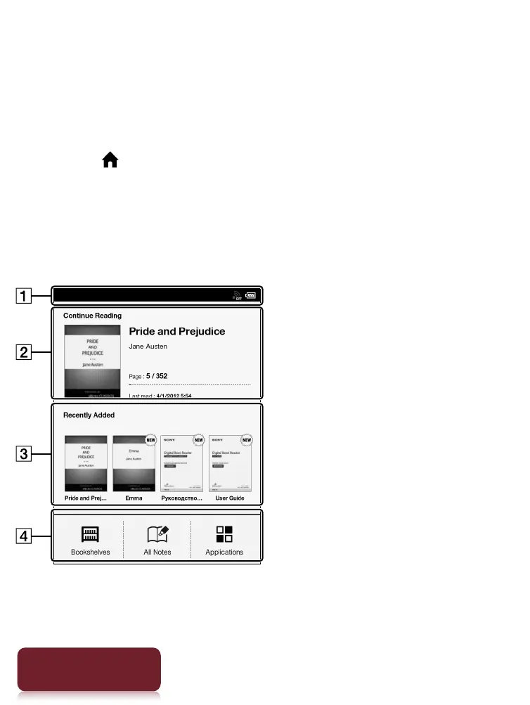 Sony Reader PRS-T2 - Basic Operations; [Home] Screen