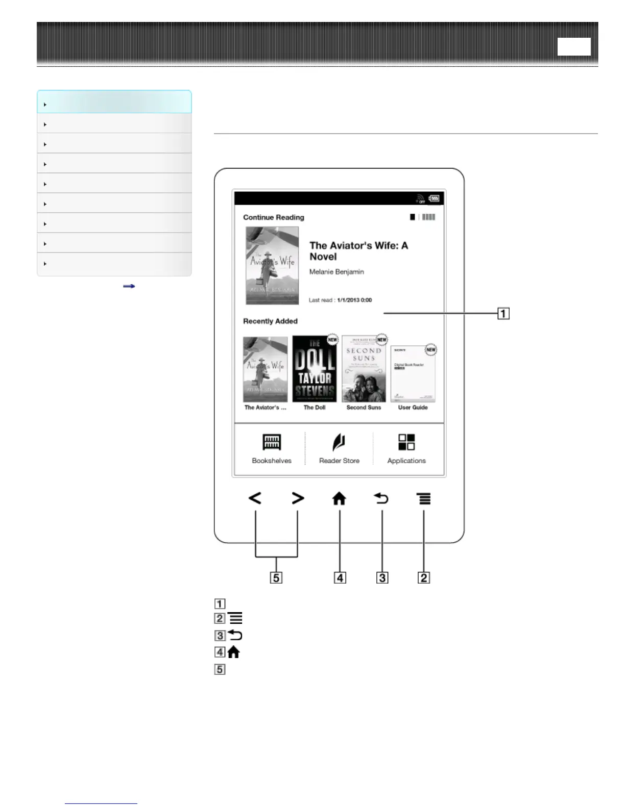 Sony Reader PRS-T3 Series - Reader Parts and Controls