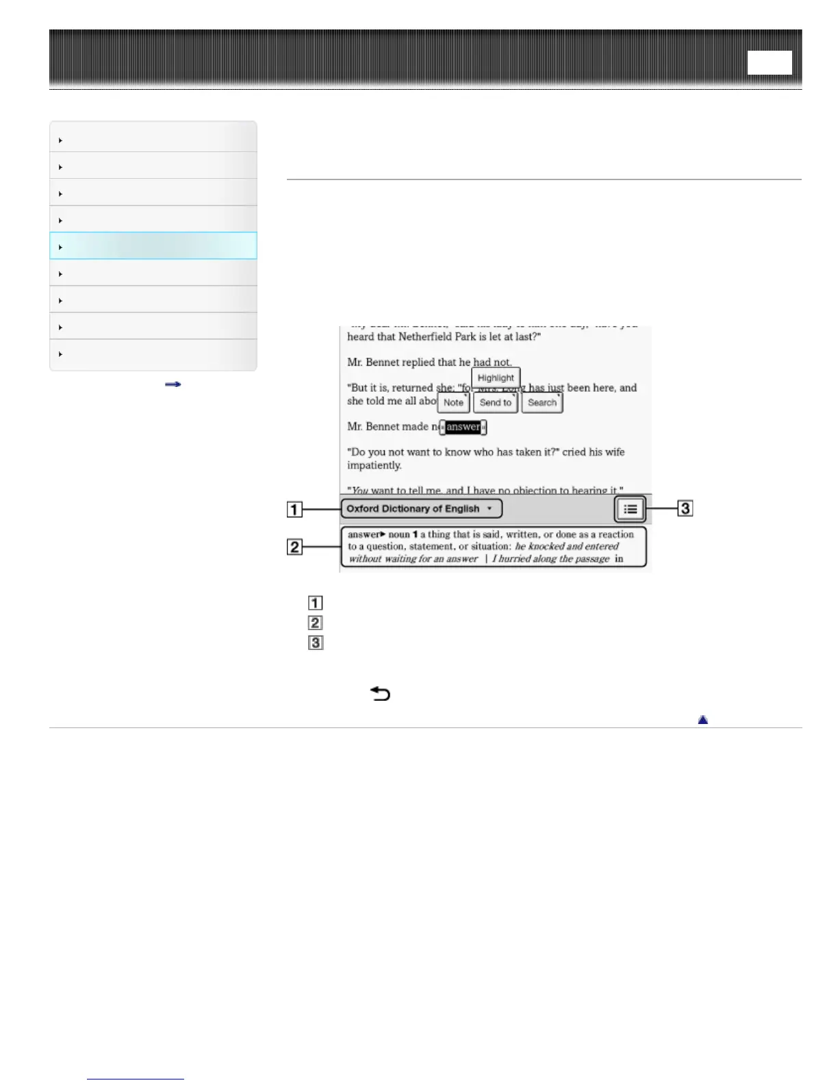 Top page > Reading > Reading eBooks > Using the Dictionary