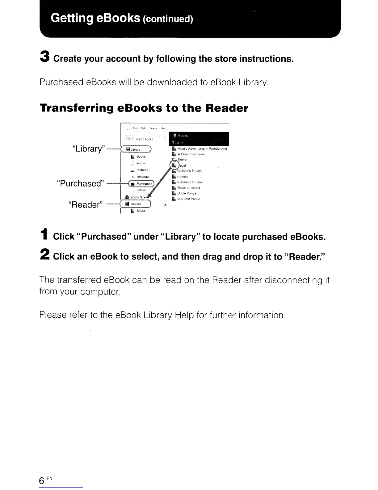 1 Click "Purchased" under "Library" to locate purchased eBooks.