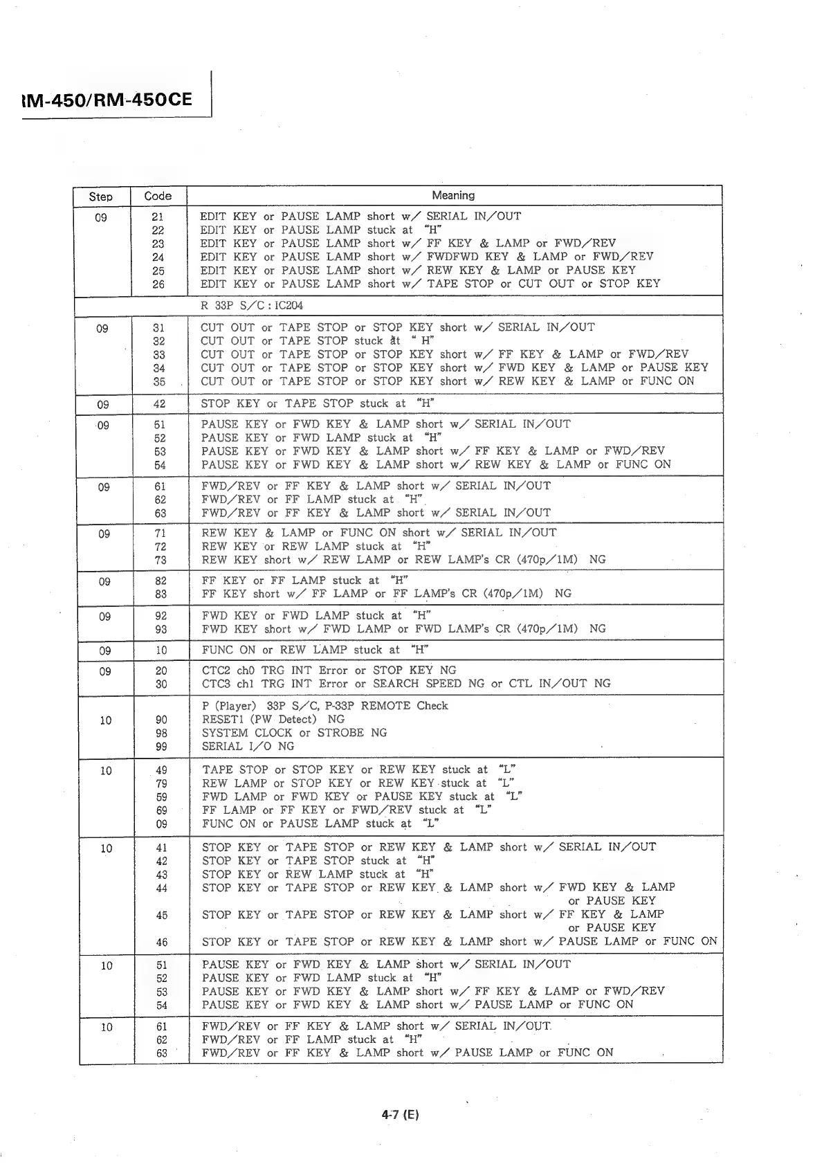 Sony RM-450 - Edit, Playback, and Control Key Errors