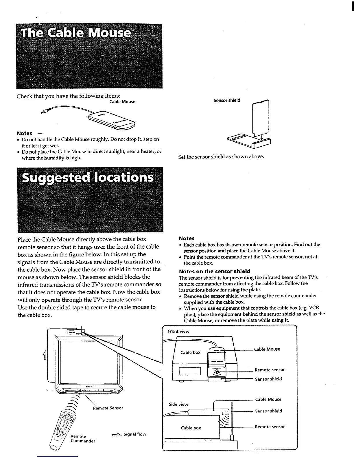 Sony RM-CM101 - The Cable Mouse; Included Items and Placement; Sensor Shield Functionality