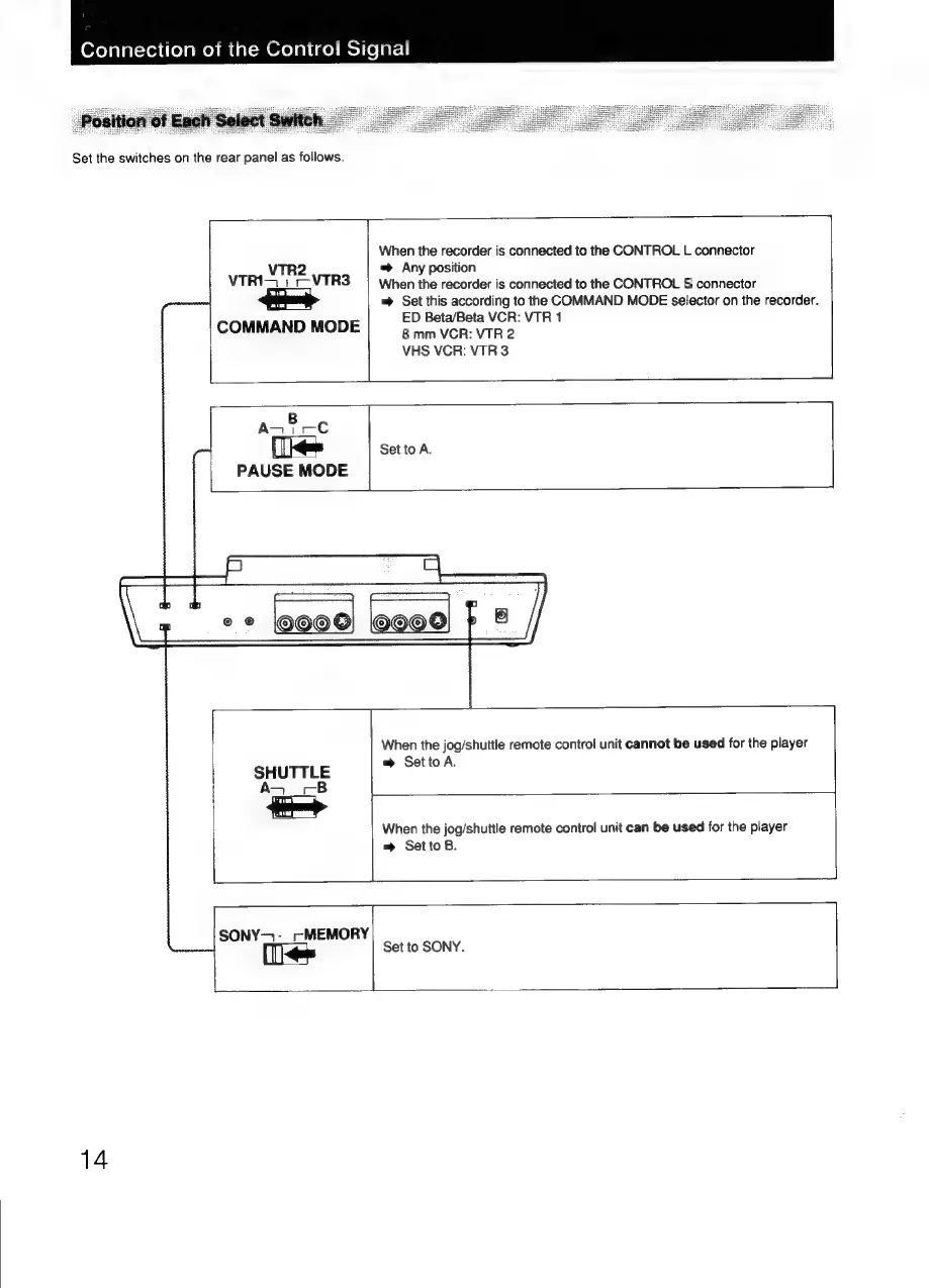 Sony RM-E300 - Rear Panel Select Switch Settings