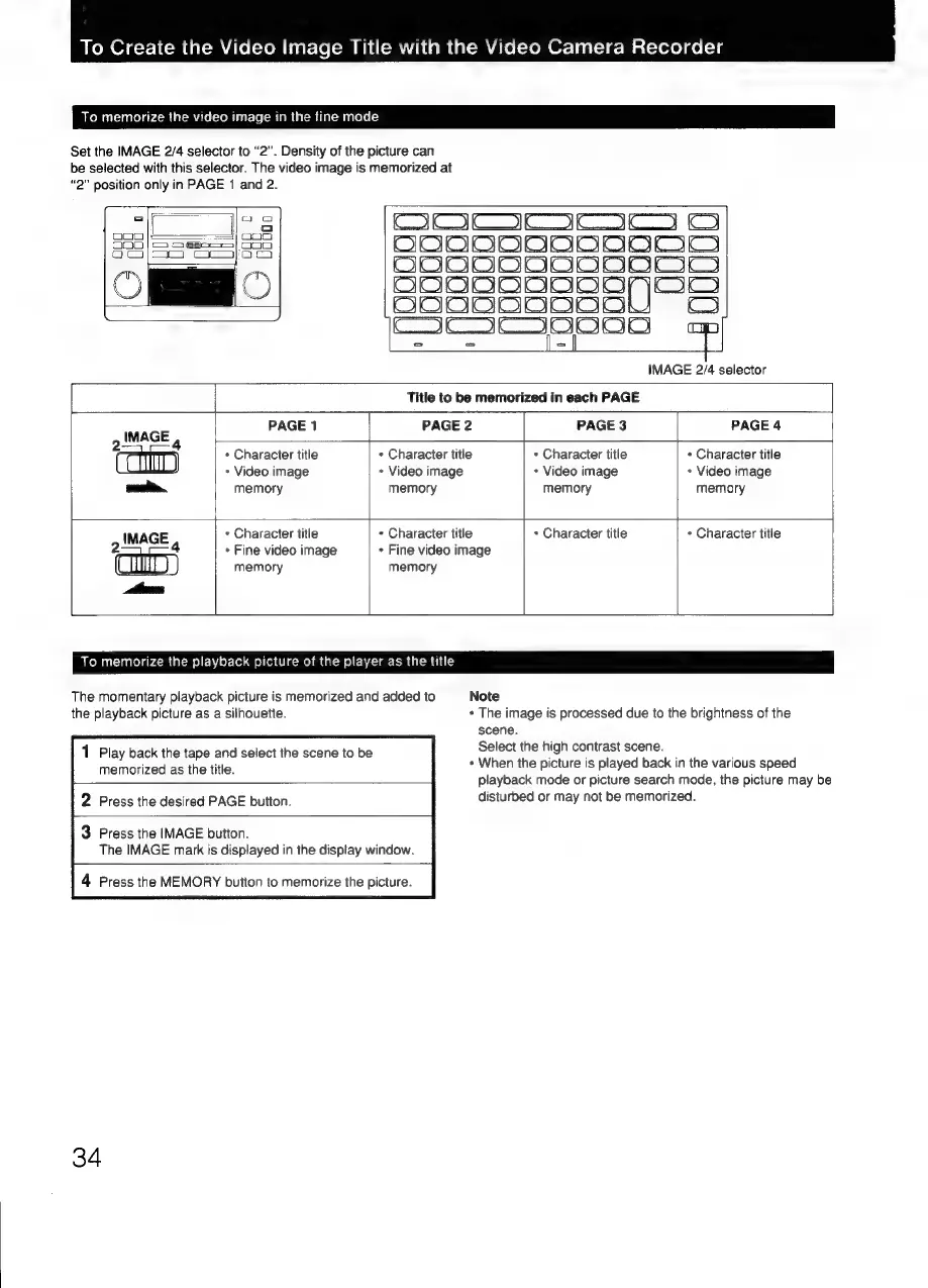 Sony RM-E300 - Fine Mode Video Image Memorization; Memorizing Player Playback as Title
