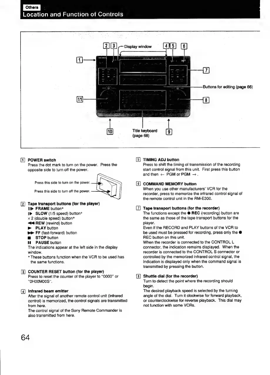 Sony RM-E300 - Location and Function of Controls; Main Unit Control Layout