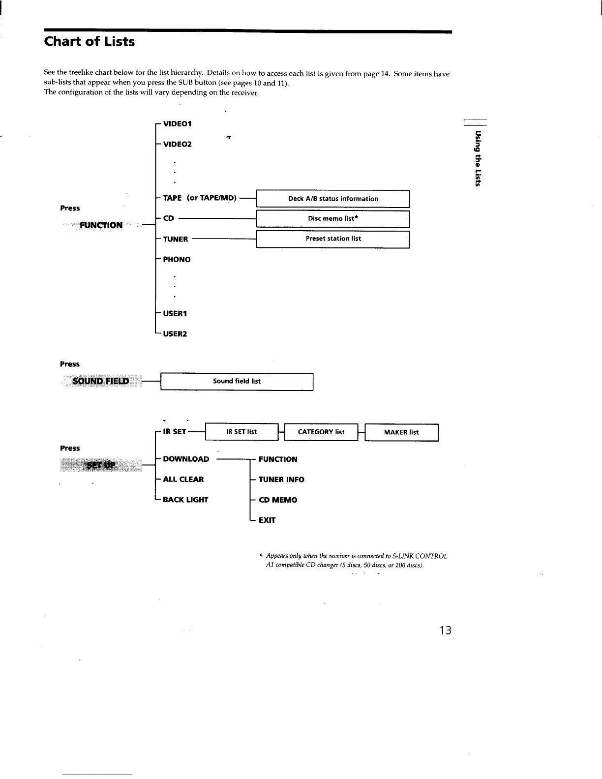 Sony RM-LJ301 - Chart of Lists