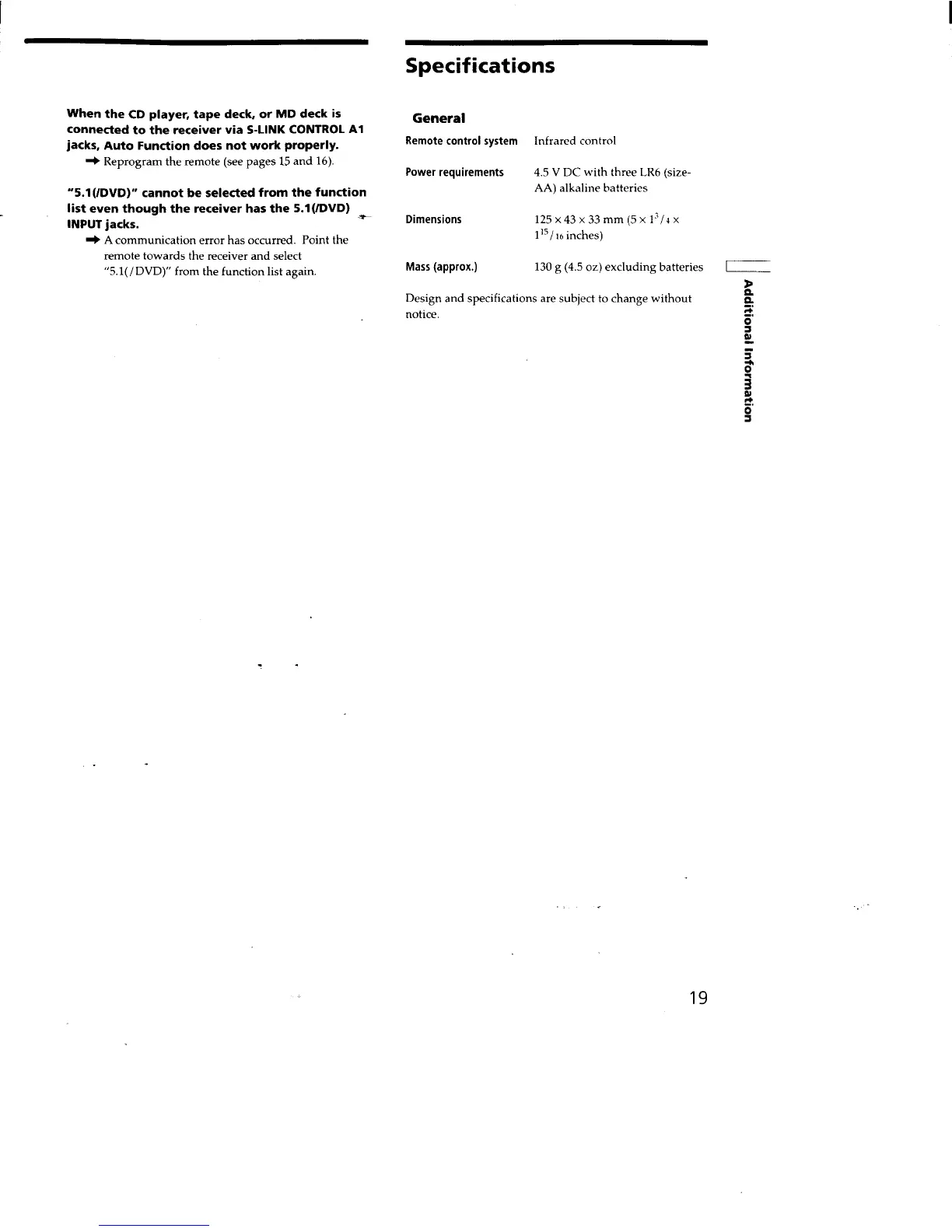 Sony RM-LJ301 - Specifications