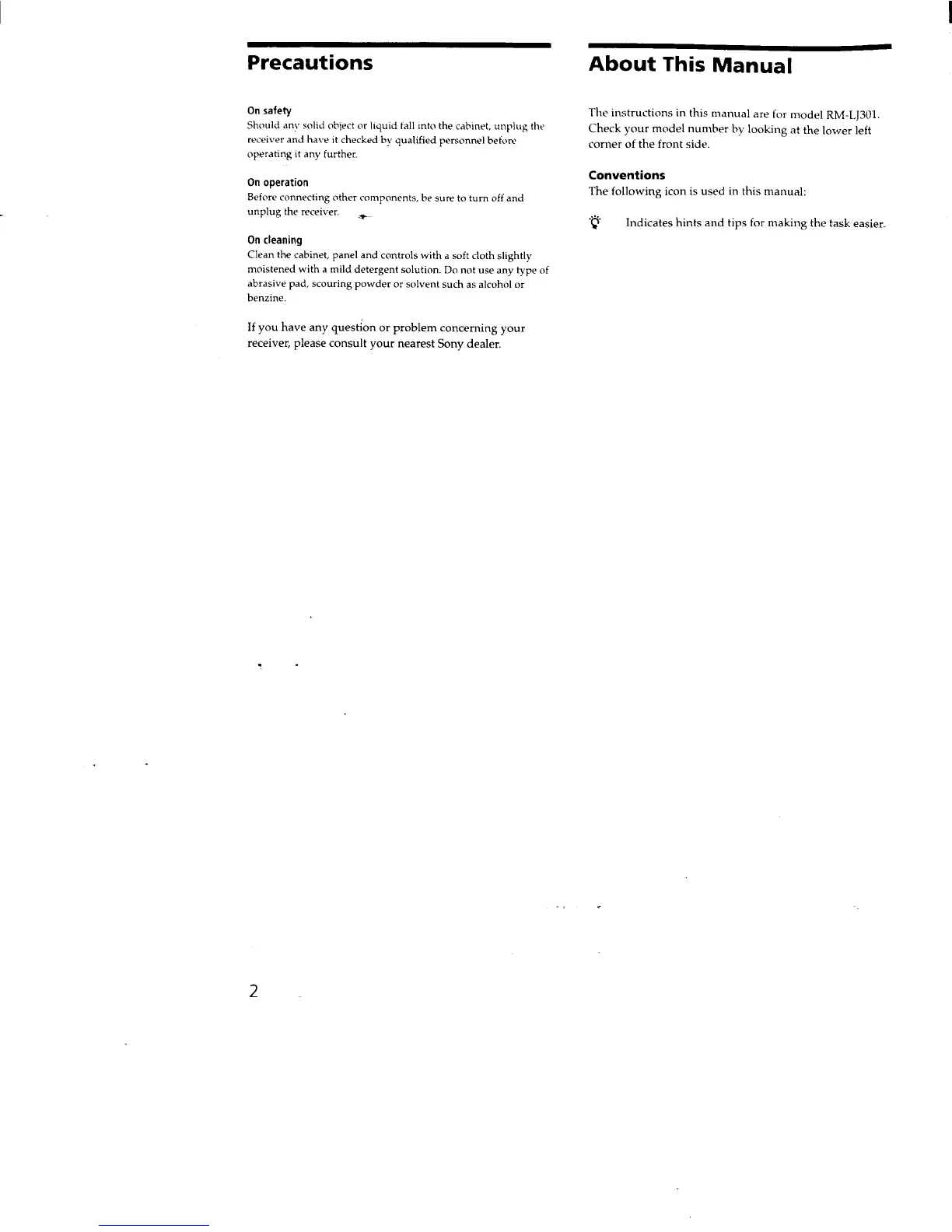 Sony RM-LJ301 - Precautions; On Safety; On Operation; On Cleaning