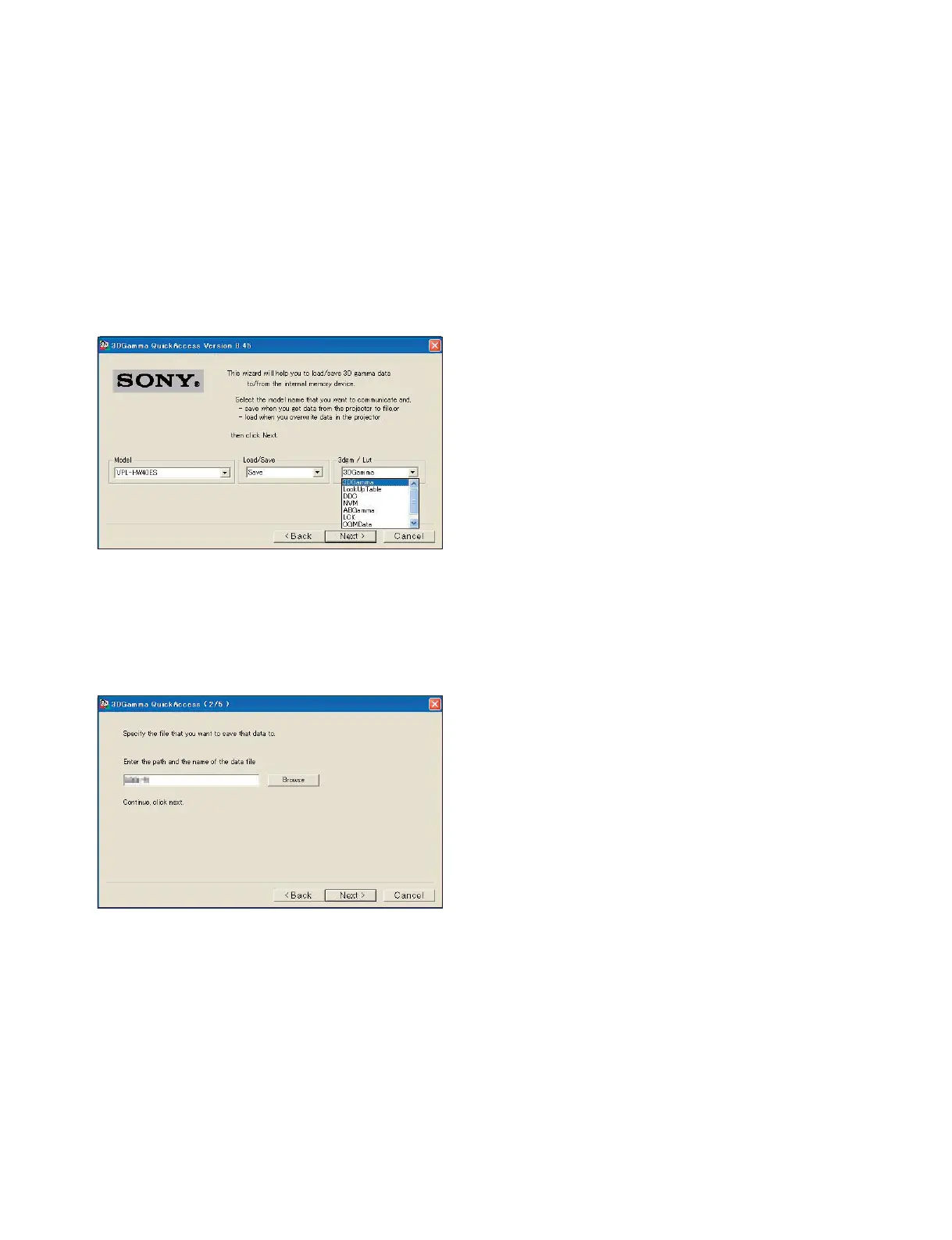 4. Select “VPL-HW40ES” on the Model pull-down menu.