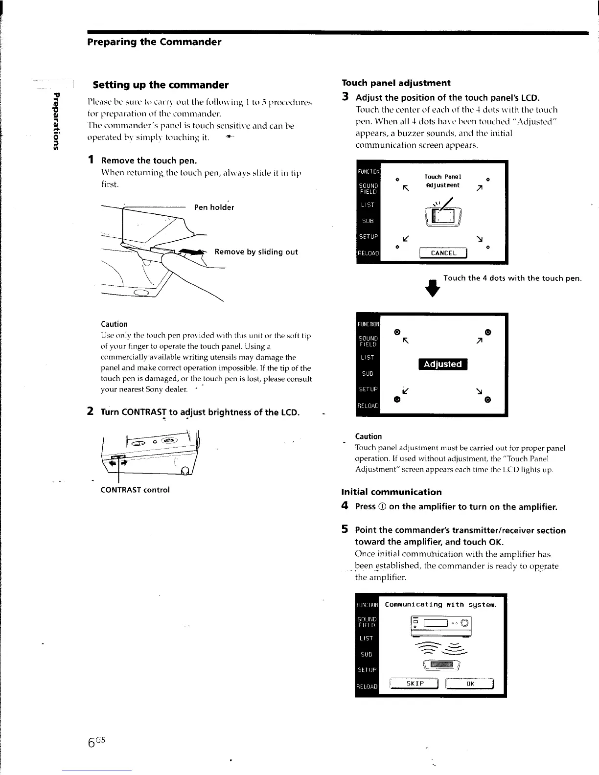 Sony RM-TP501E Primary - Setting up the Commander; Touch Panel Adjustment; Initial Communication