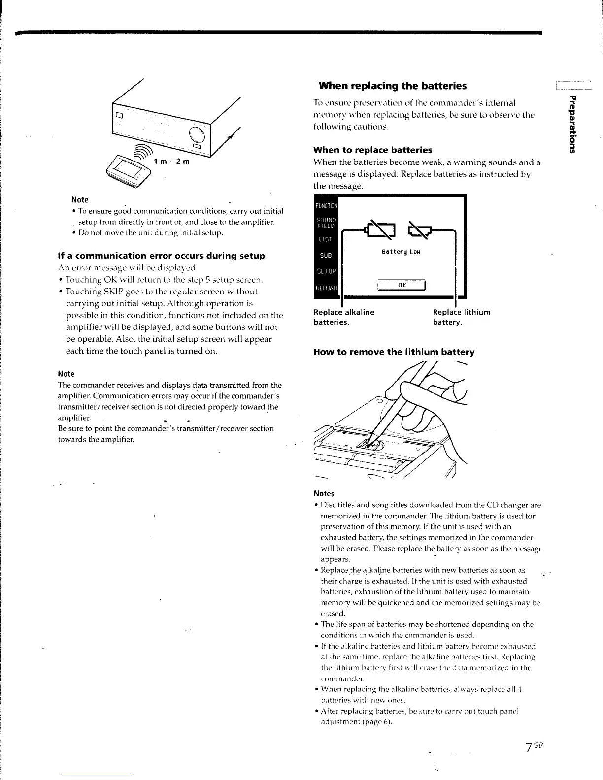 Sony RM-TP501E Primary - When Replacing the Batteries; If a Communication Error Occurs During Setup; How to Remove the Lithium Battery