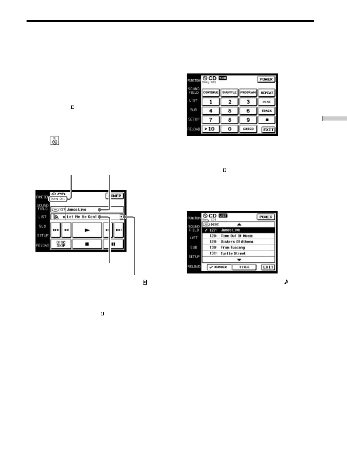 * Only displayed when a Sony CD changer (5/50/200/300/400