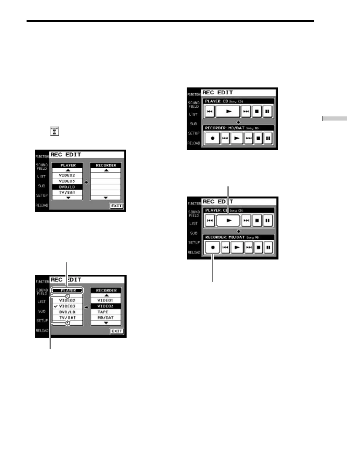 5 Touch r in RECORDER: MD/DAT, then touch ( in