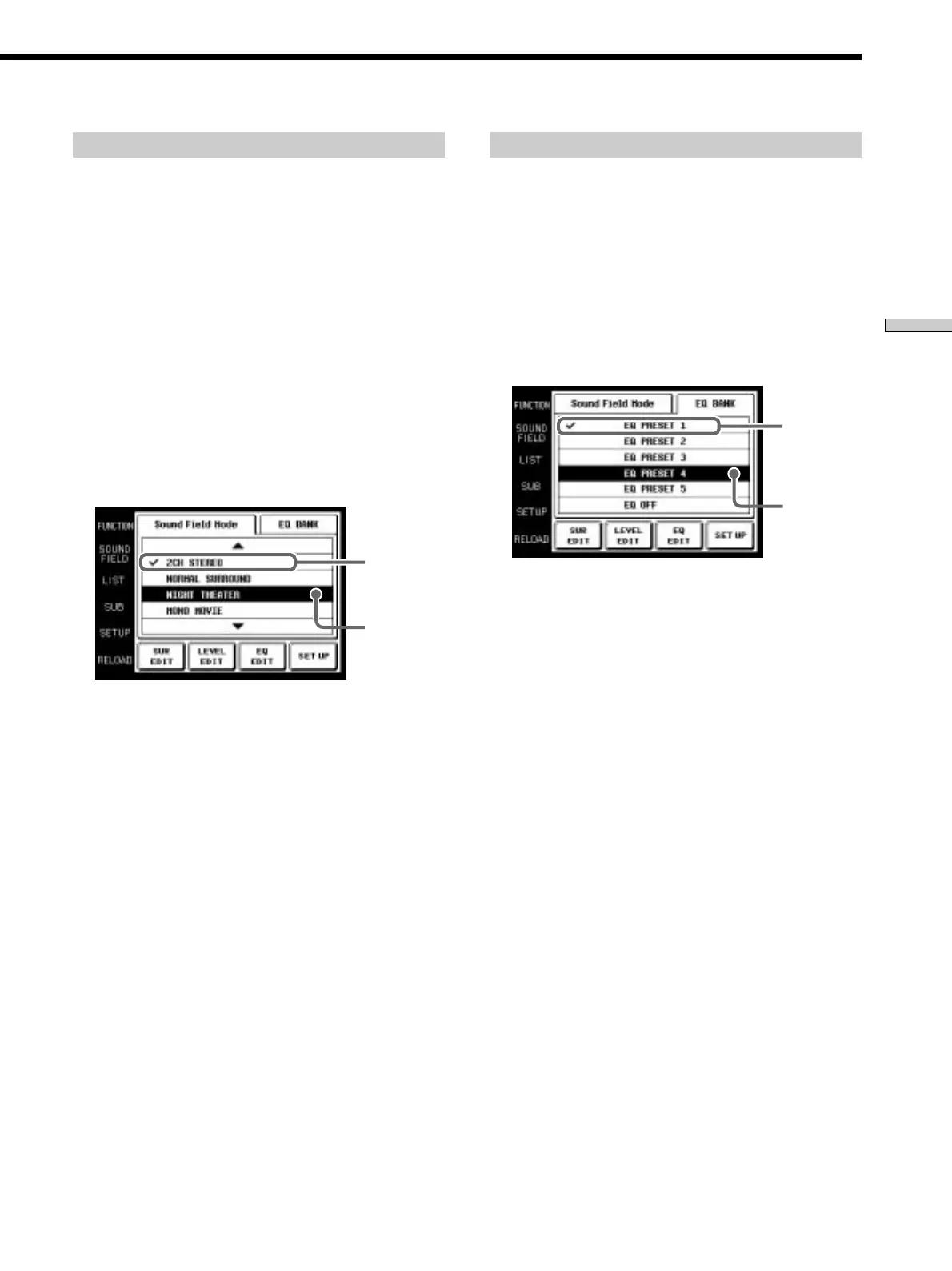 The SOUND FIELD screen appears.
