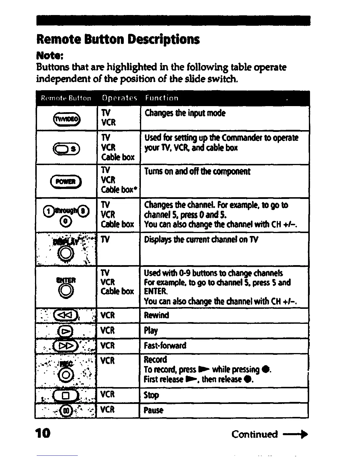 Sony RM-V11 - Remote Button Descriptions