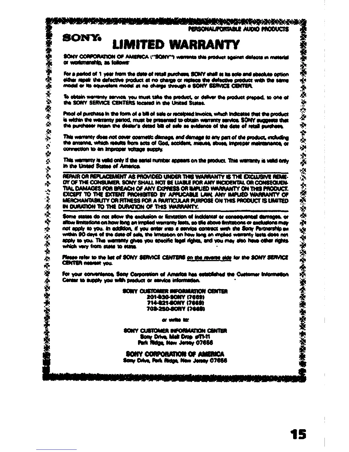 Sony RM-V11 - LIMITED WARRANTY