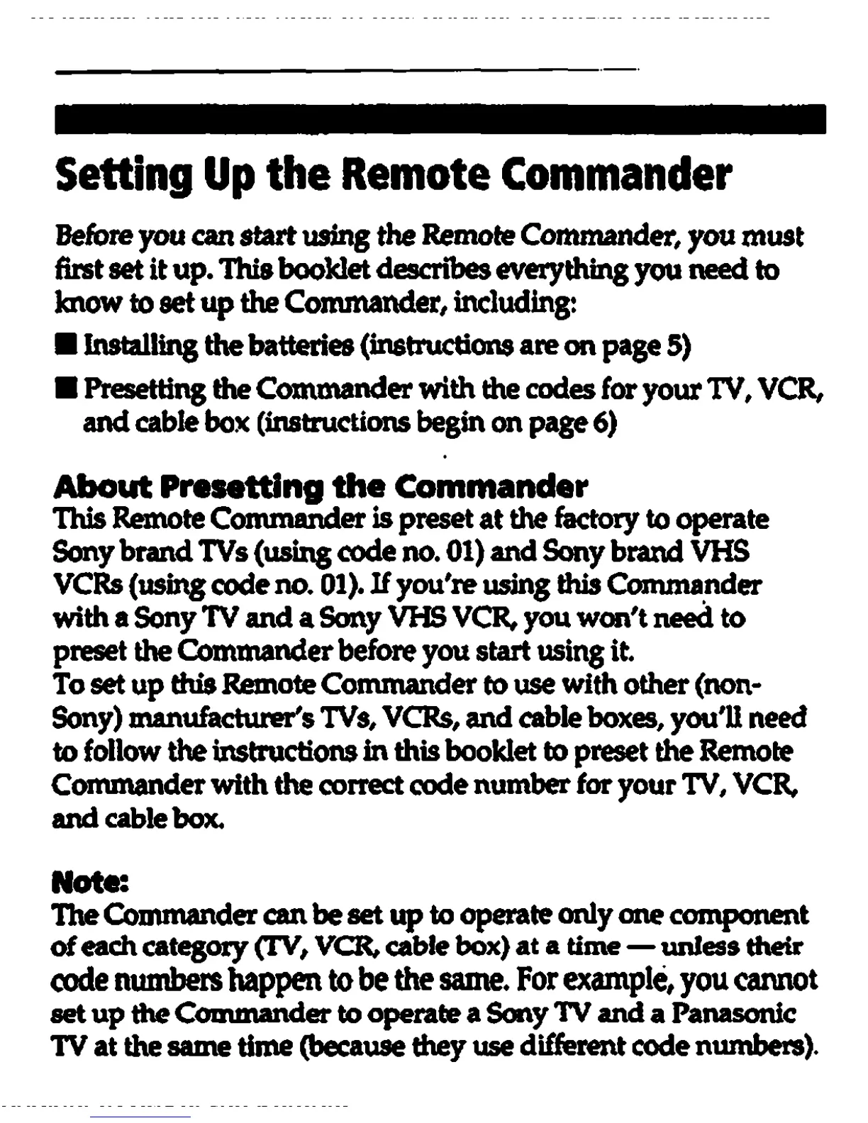 Sony RM-V11 - Setting Up the Remote Commander