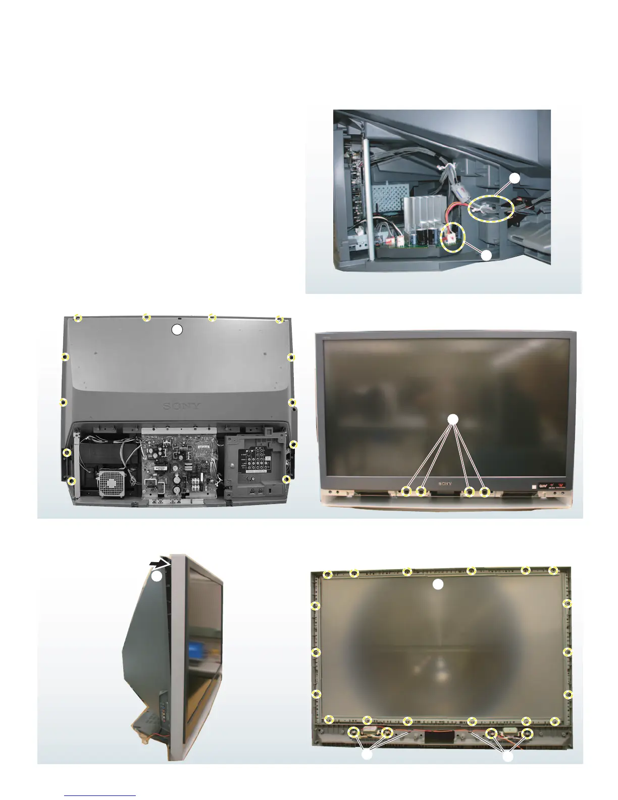 Remove 18 screws (42” models), 20 screws (50” models),
