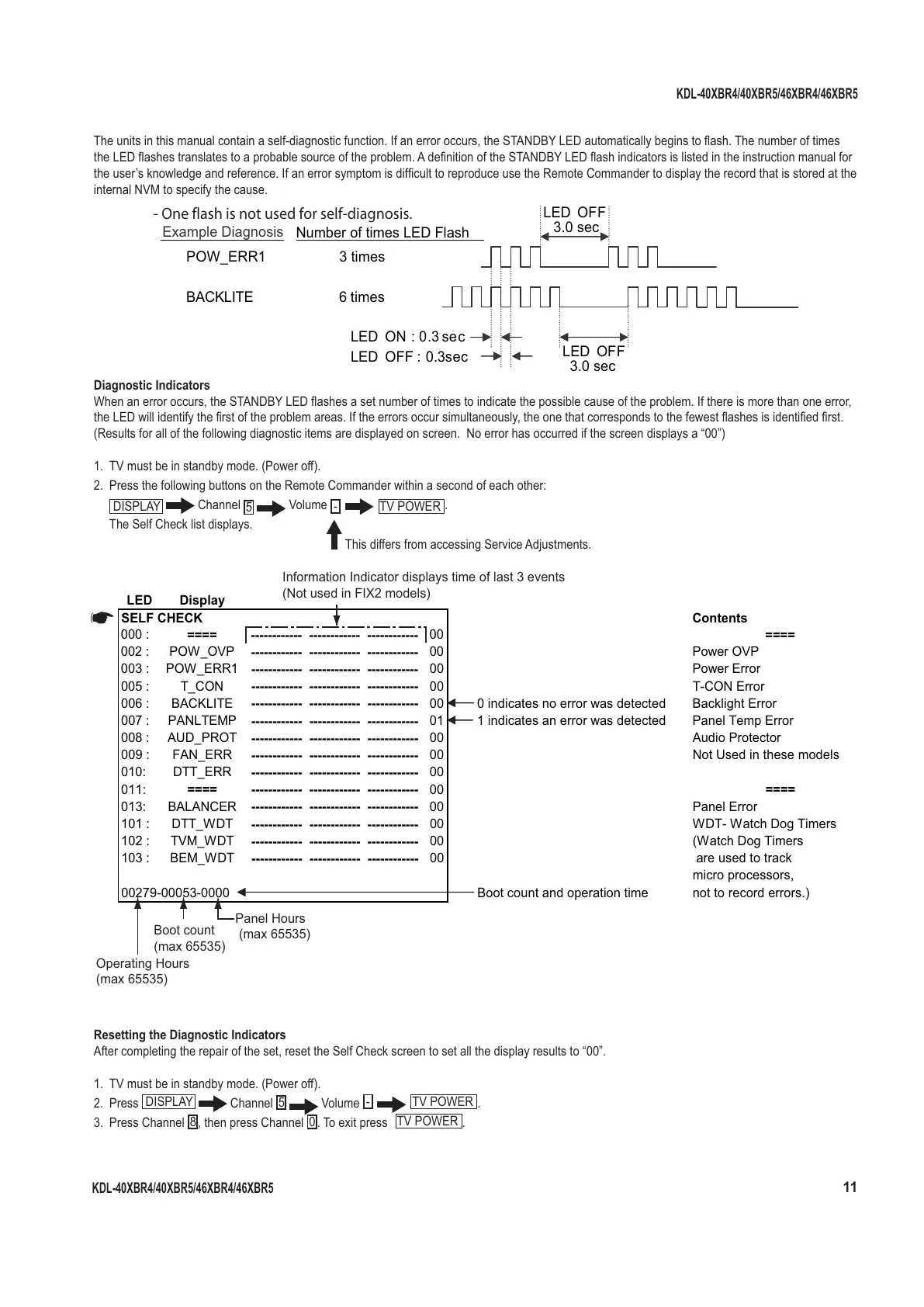 The units in this manual contain a self-diagnostic function. If an error occurs, the STANDBY LED automatically begins to ļ¬ ash. The number of times