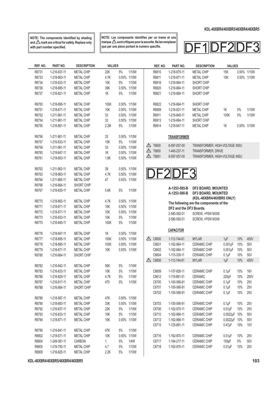 REF. NO. PART NO. DESCRIPTION VALUES