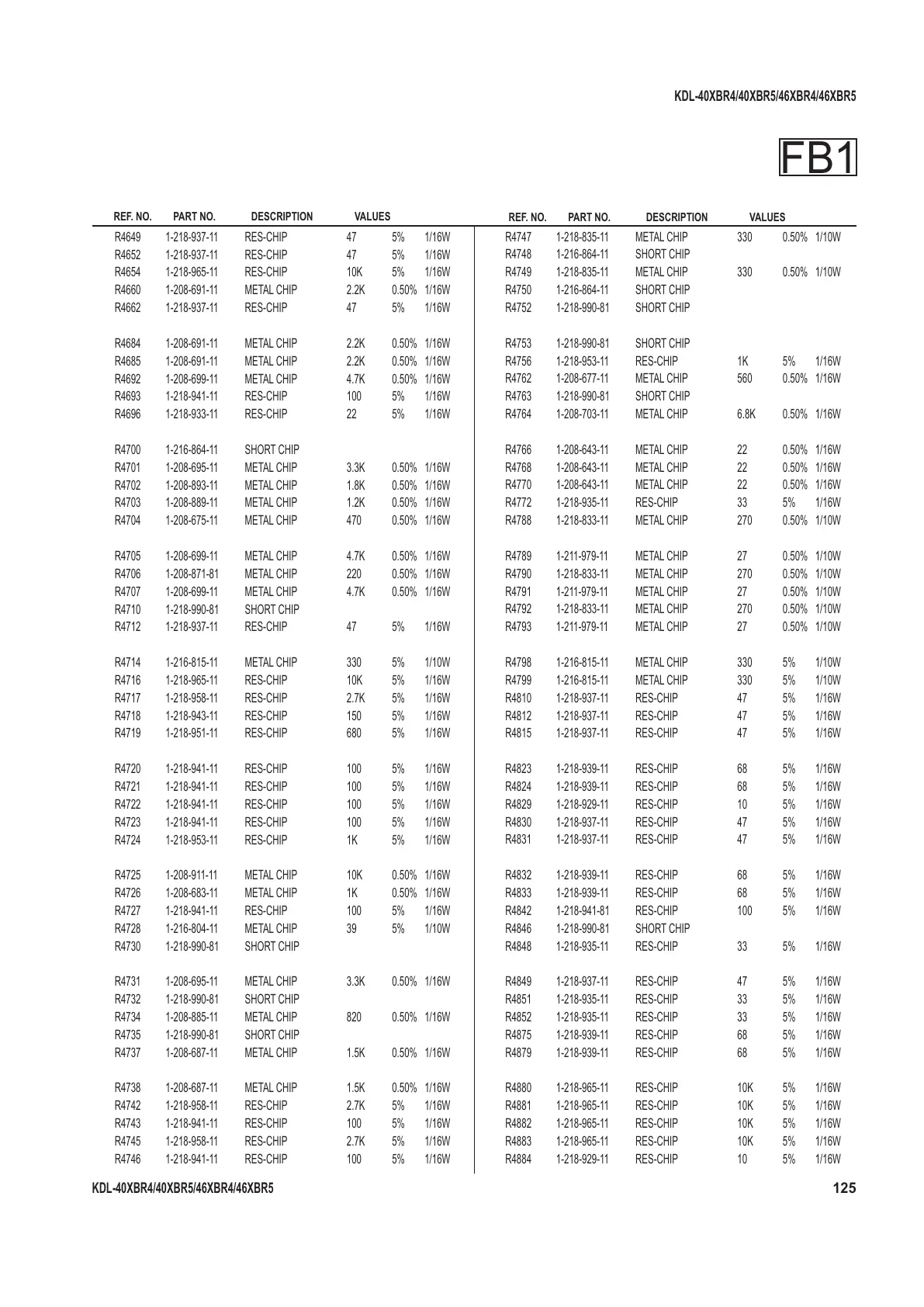 R4652 1-218-937-11 RES-CHIP 47 5% 1/16W