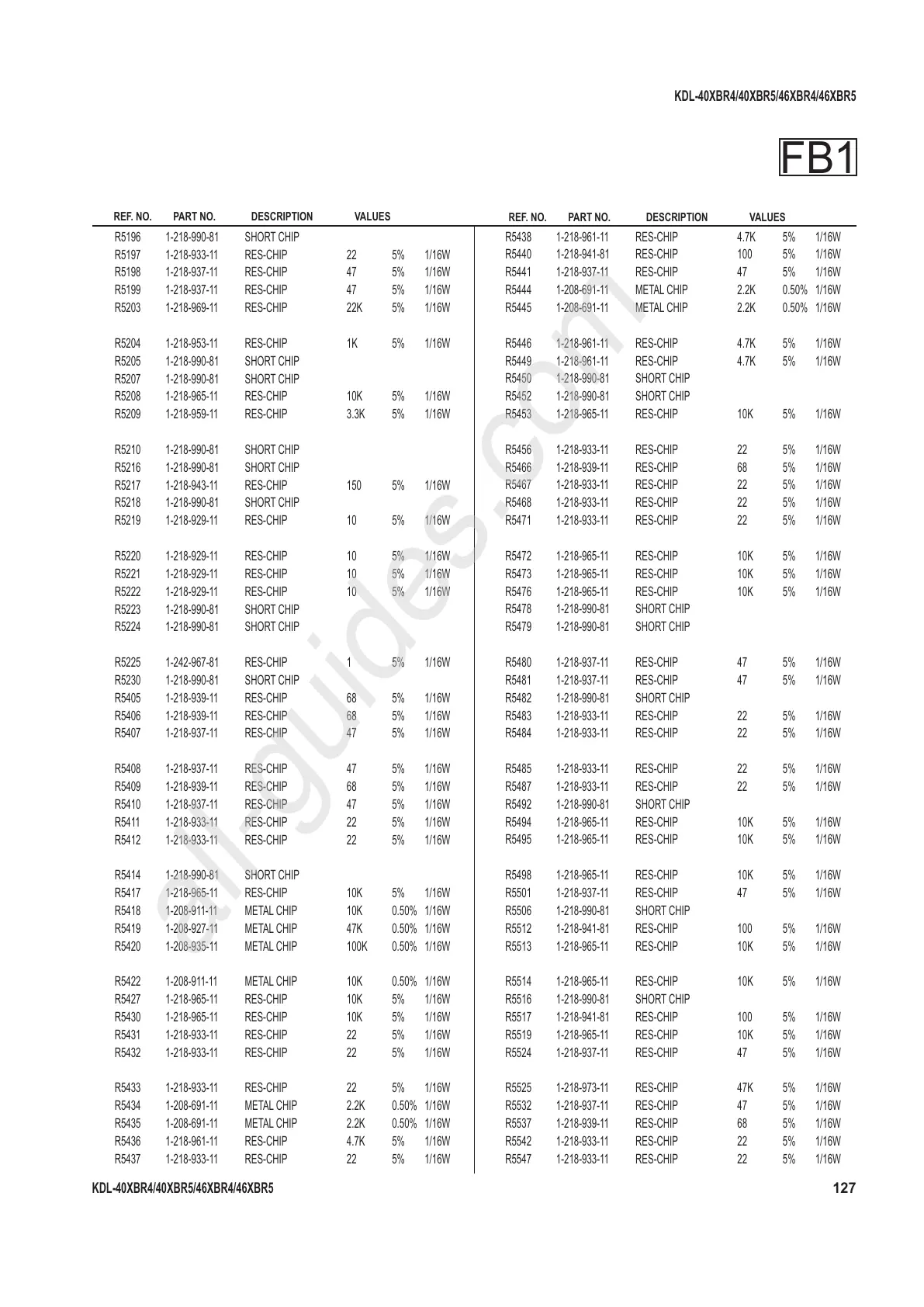 R5198 1-218-937-11 RES-CHIP 47 5% 1/16W