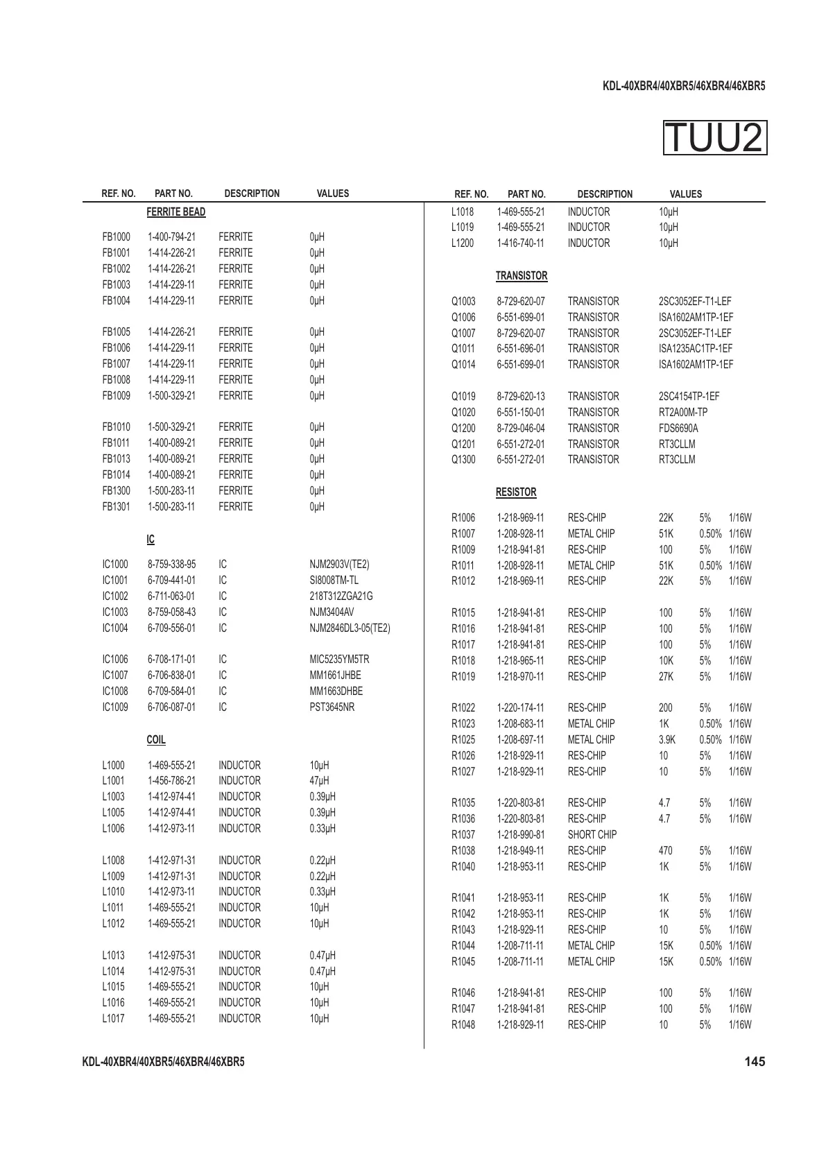 REF. NO. PART NO. DESCRIPTION VALUES
