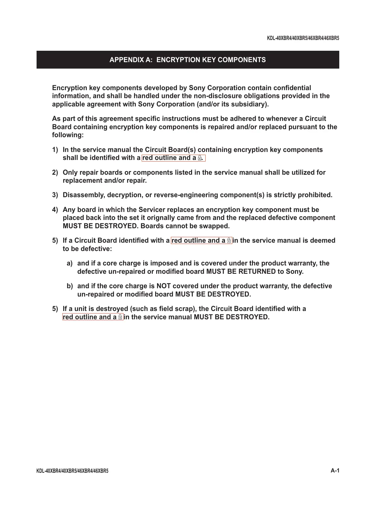defective un-repaired or modifi ed board MUST BE RETURNED to Sony.
