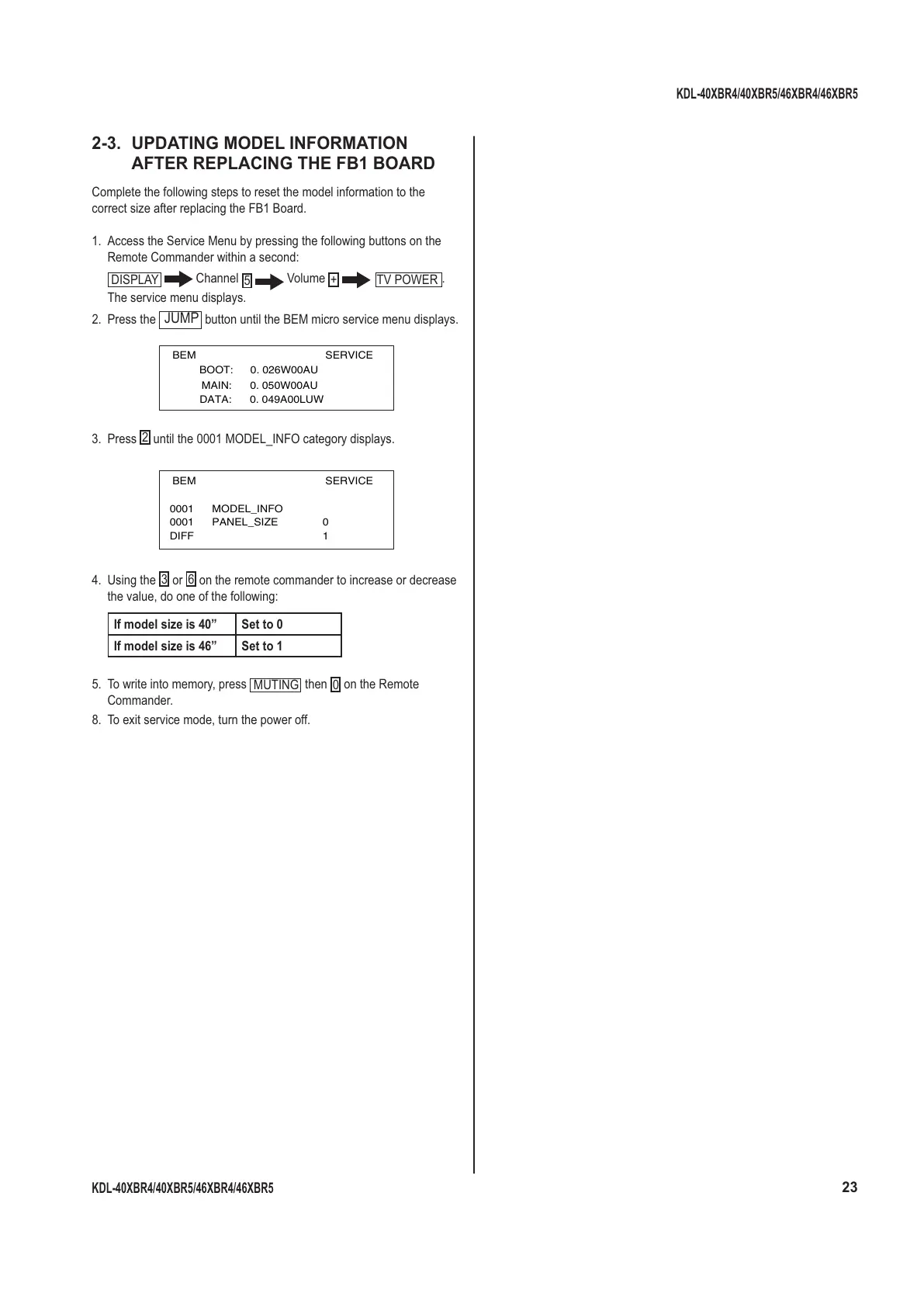 KDL-40XBR4/40XBR5/46XBR4/46XBR5