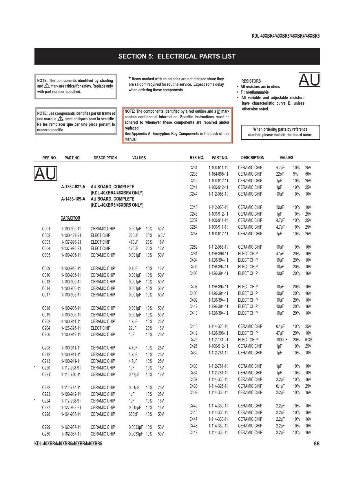 KDL-40XBR4/40XBR5/46XBR4/46XBR5