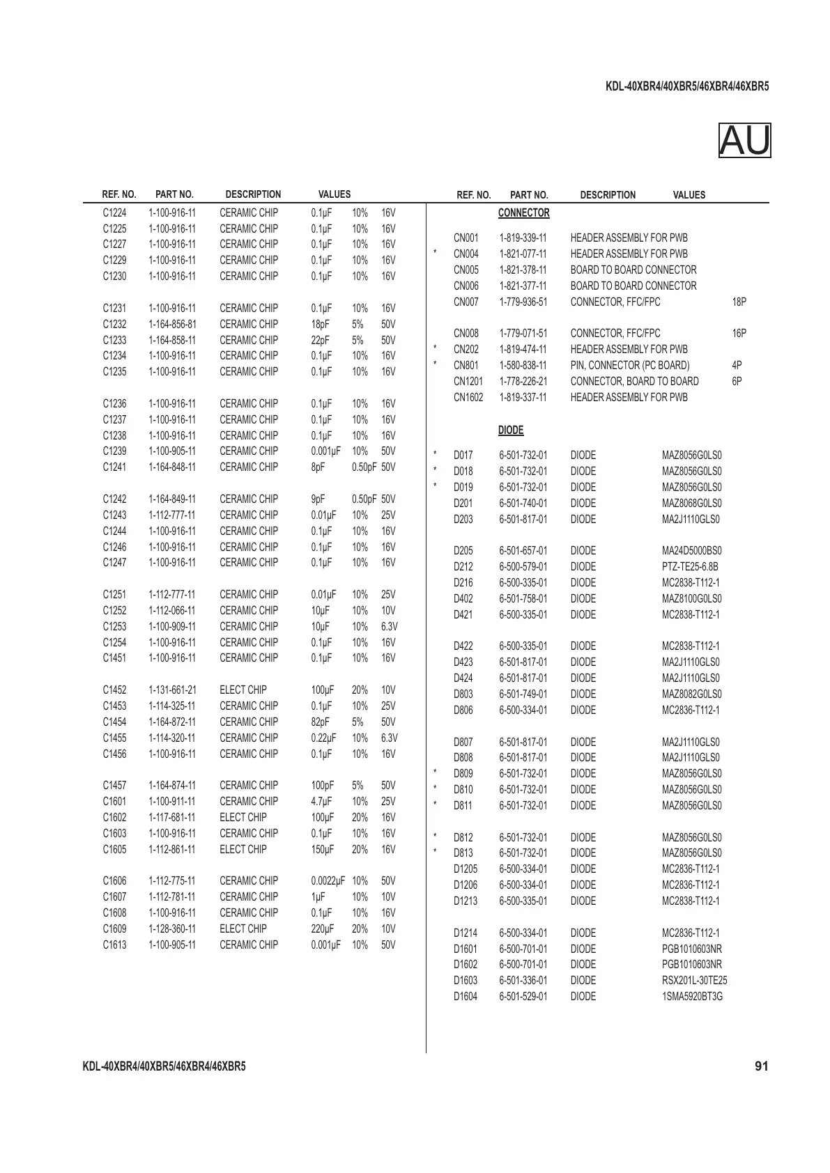 REF. NO. PART NO. DESCRIPTION VALUES
