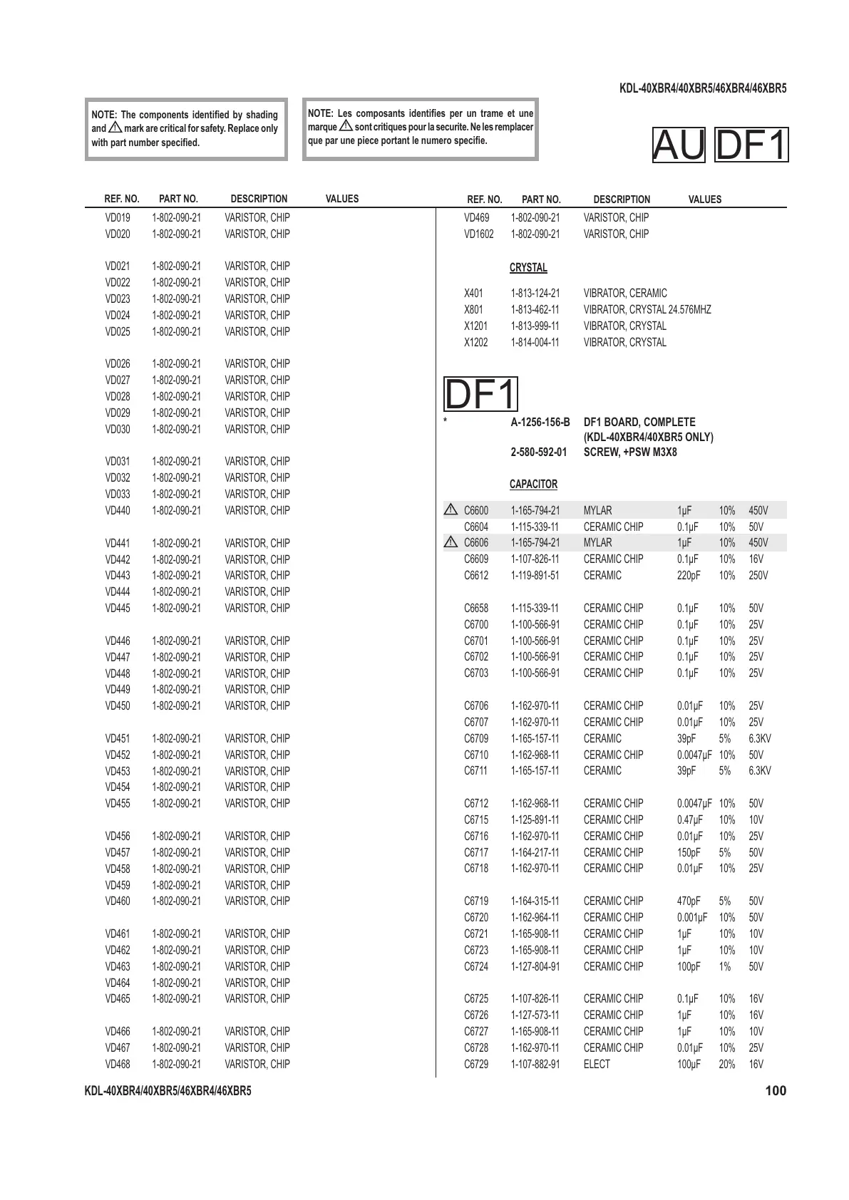 KDL-40XBR4/40XBR5/46XBR4/46XBR5