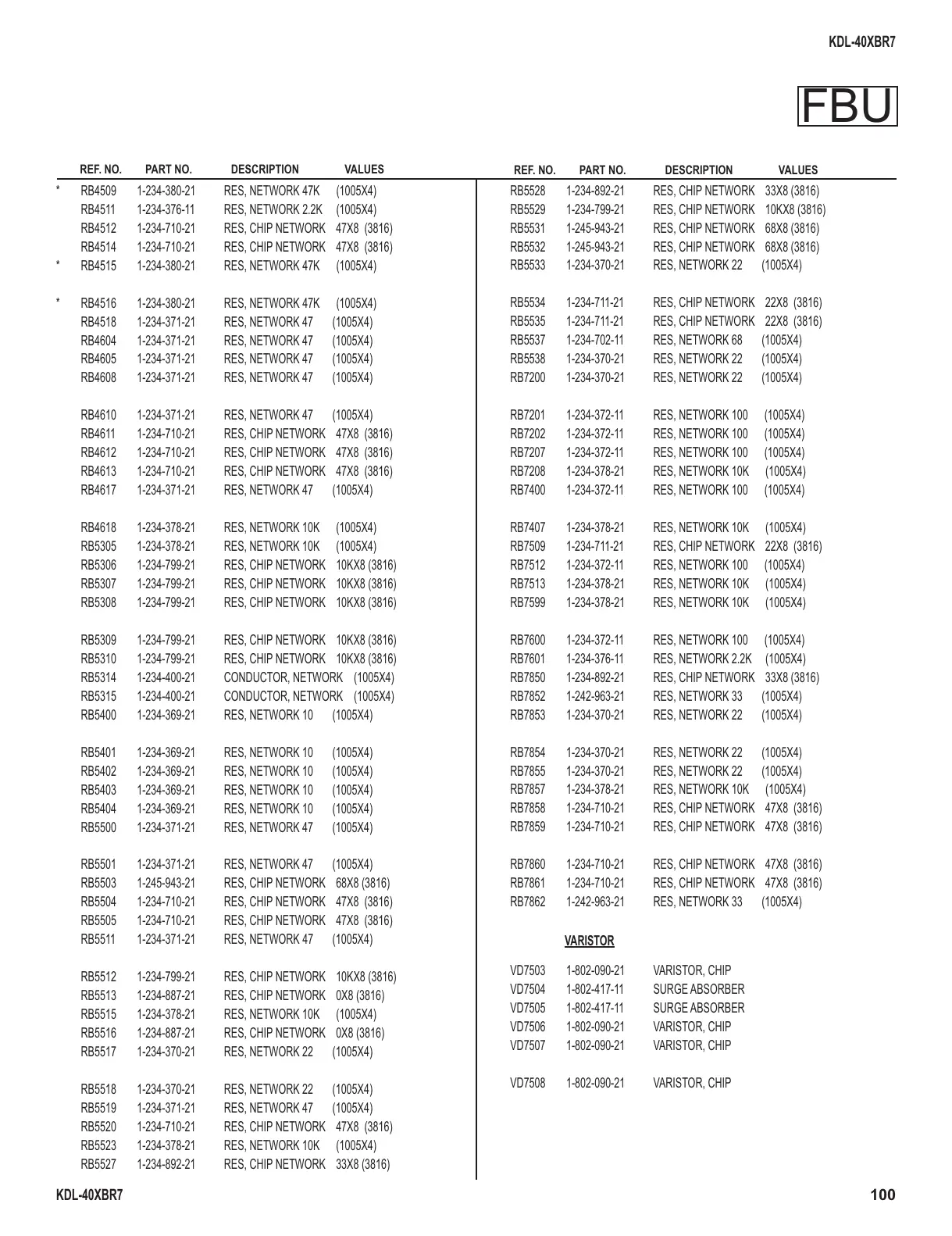 RB7600 1-234-372-11 RES, NETWORK 100 (1005X4)