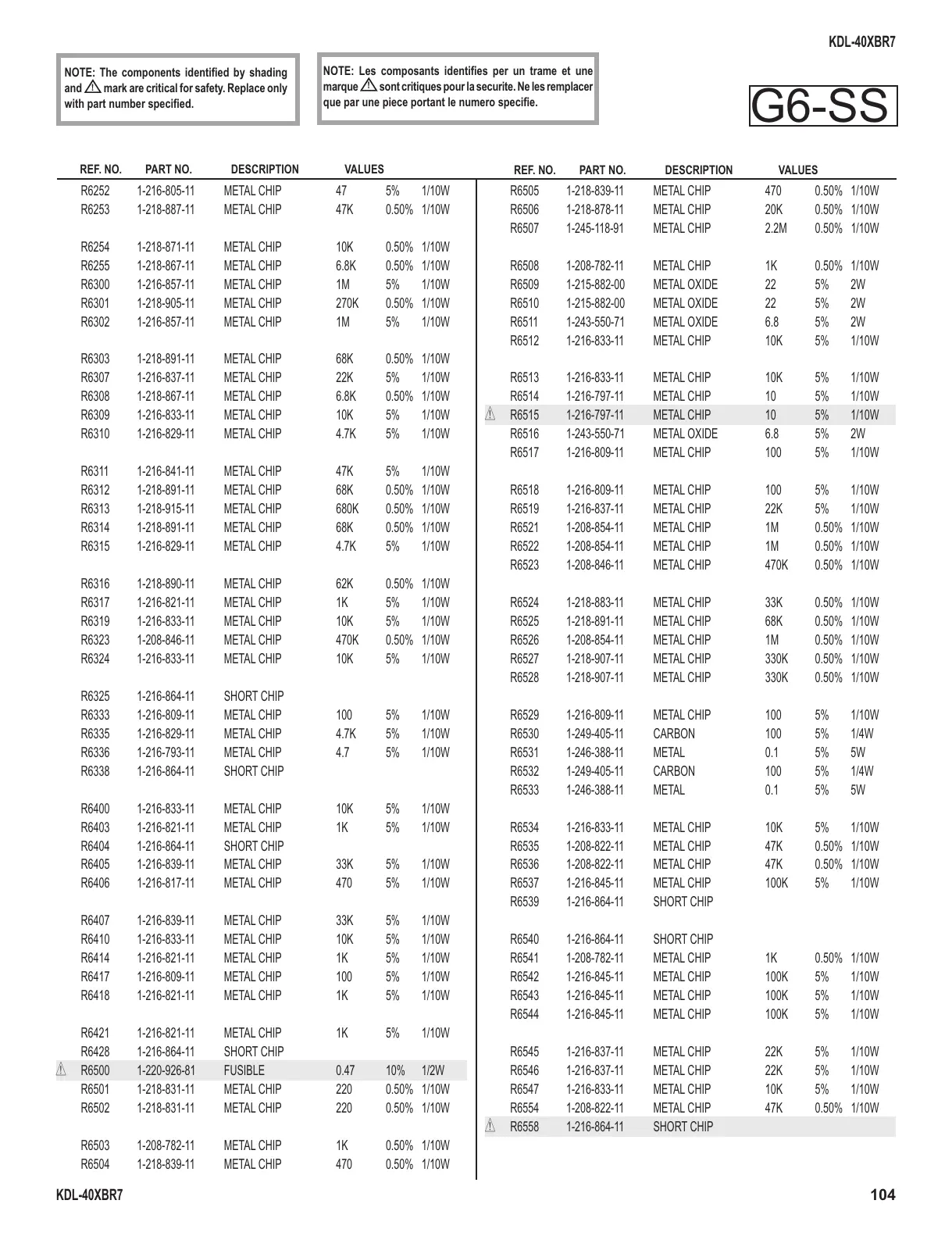 R6252 1-216-805-11 METAL CHIP 47 5% 1/10W