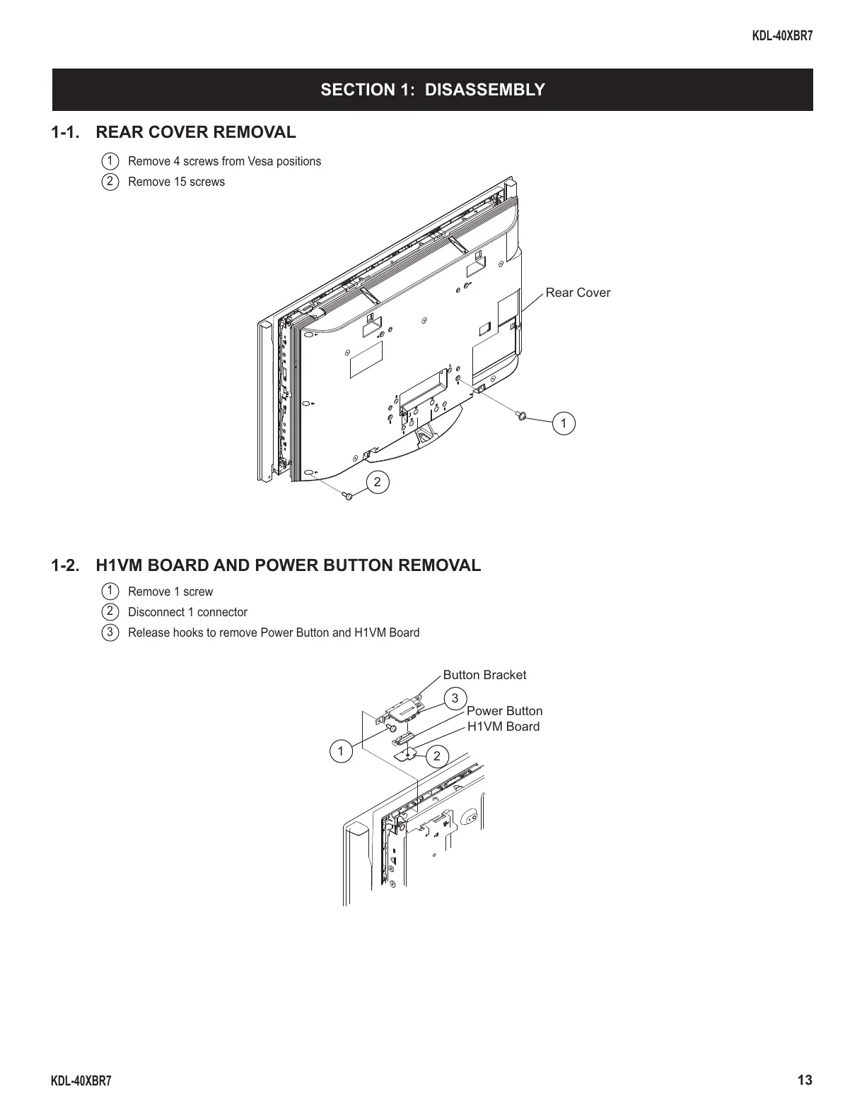 Sony RM-YD024 - Section 1: Disassembly; Rear Cover Removal; H1 VM Board and Power Button Removal