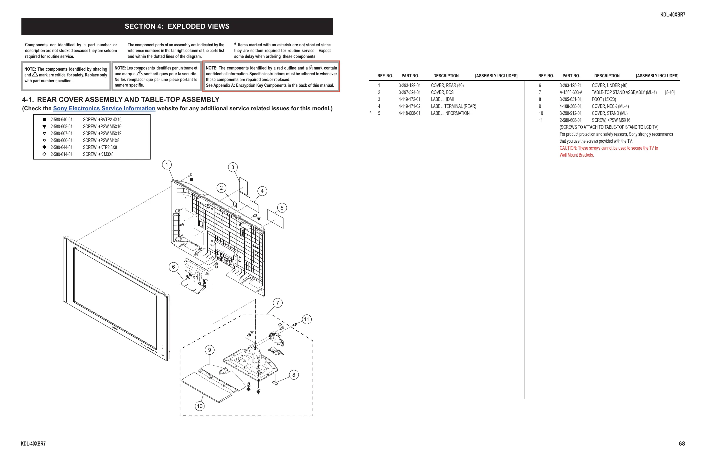 (Check the Sony Electronics Service Information website for any additional service related issues for this model.)